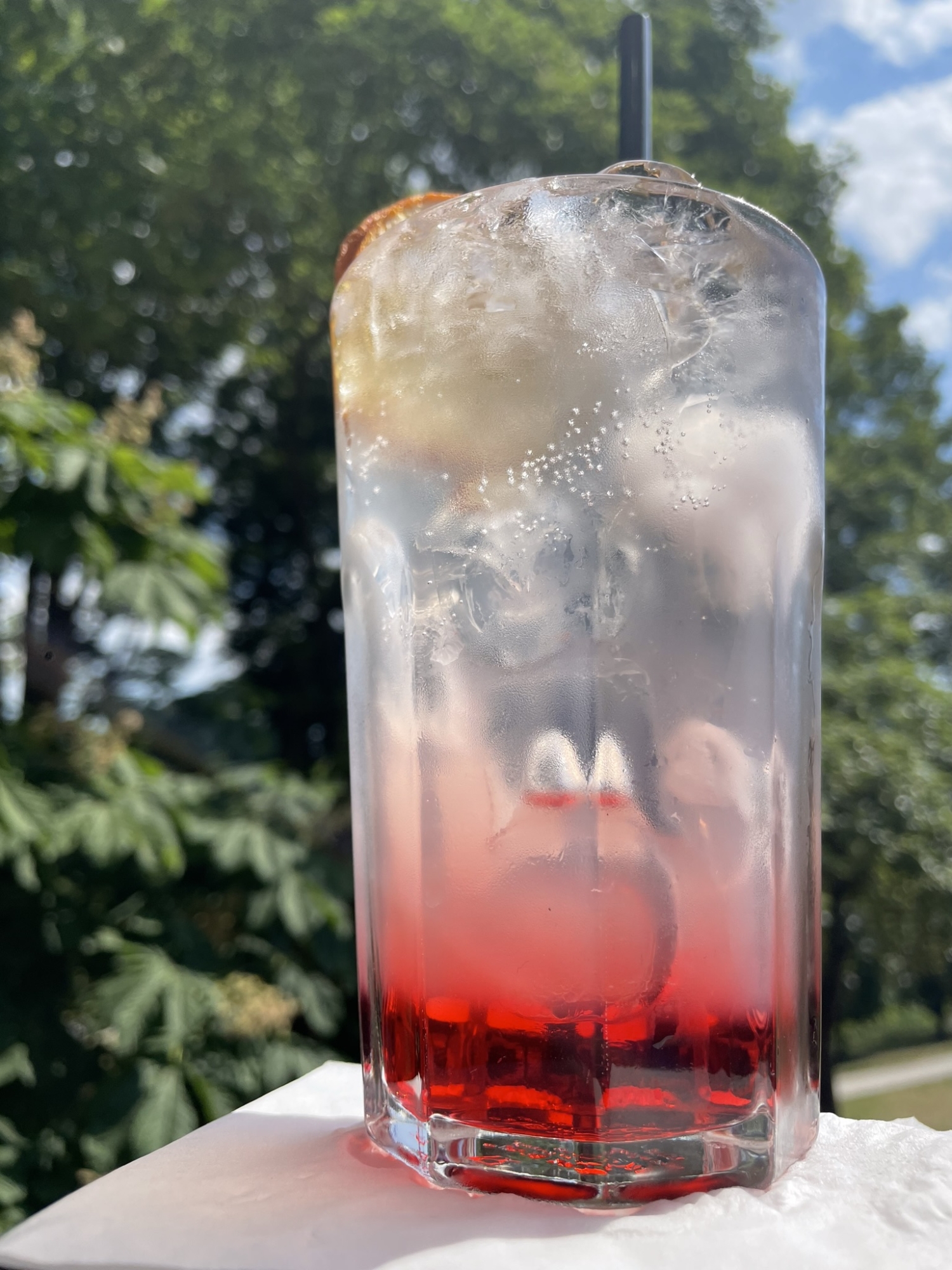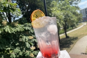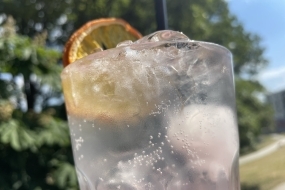 Orzeżwiający drink na bazie prosecco free (80ml), mięty, limonki i syropu z kwiatów czarnego bzu